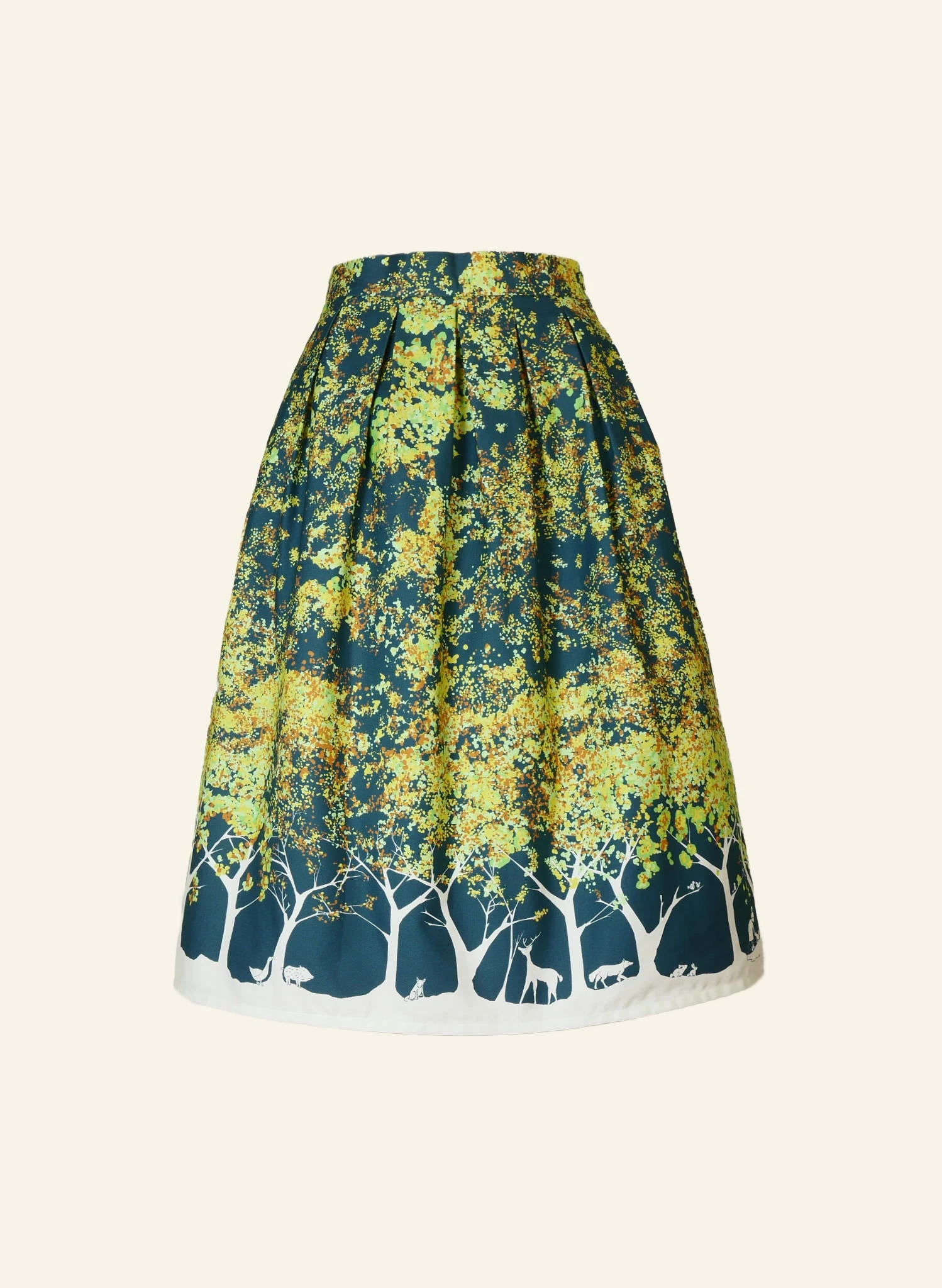 Capturing the magic and light of autumn forest walks and colourful leaves, our archive Navy Forest print is coming back in this limited edition skirt. And if you look closely, you can even spot little Rodney on the hand-illustrated borderprint…