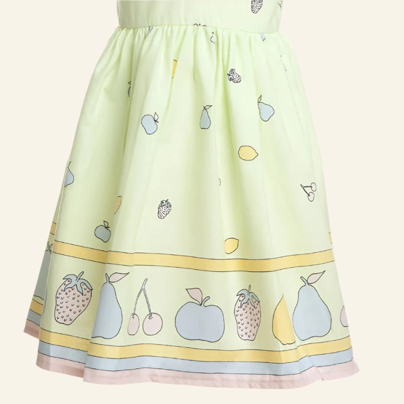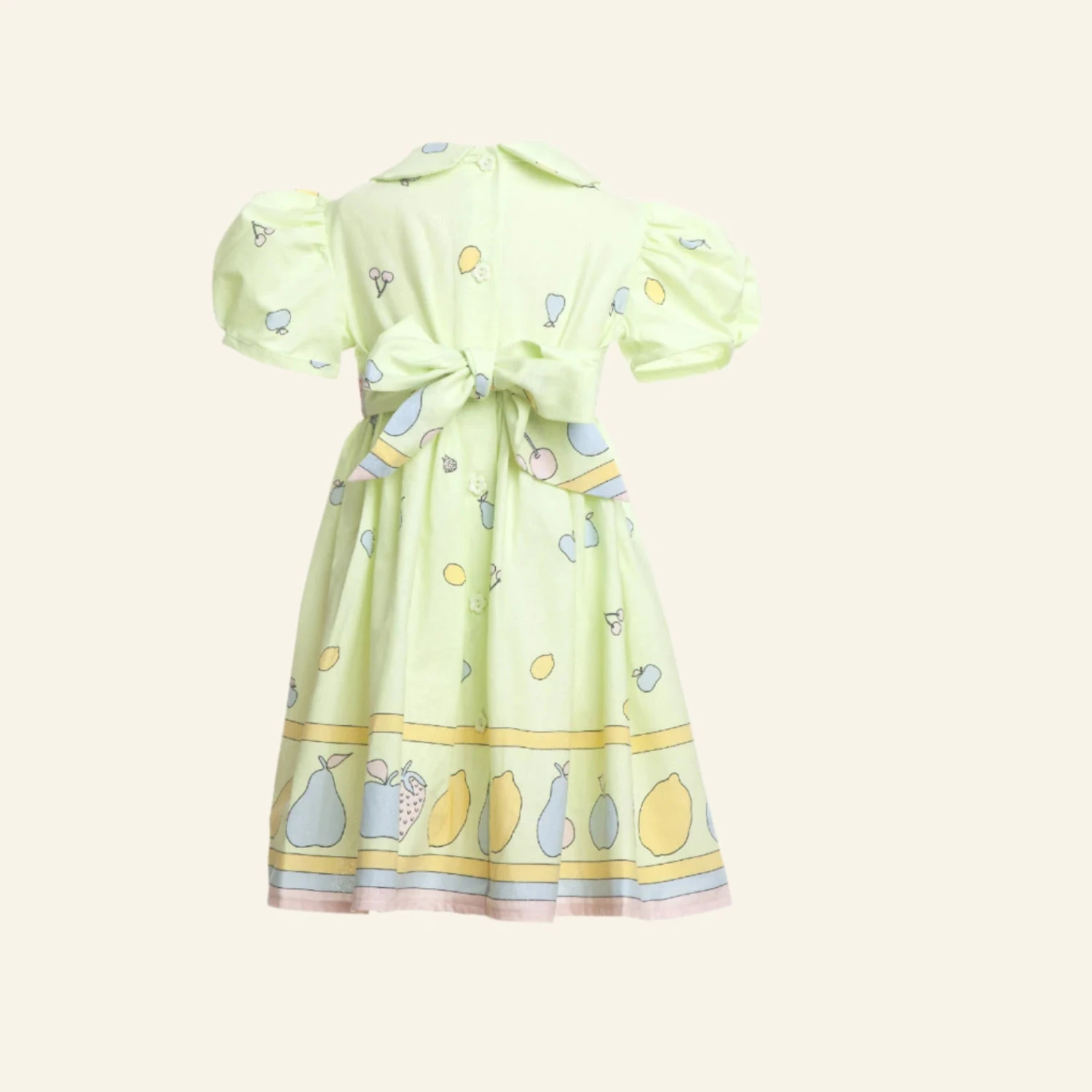 There are buttons down the back of our Alice style to fasten. With a lovely full skirt to add a bit of party flair for special occasions.