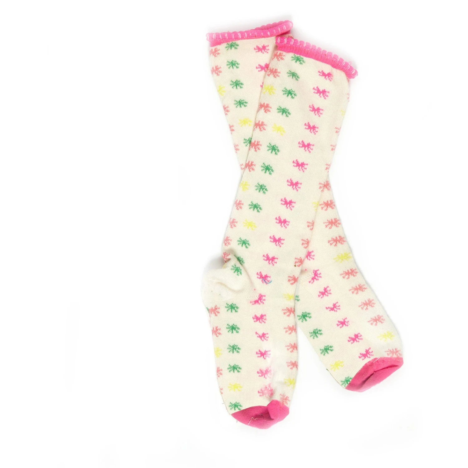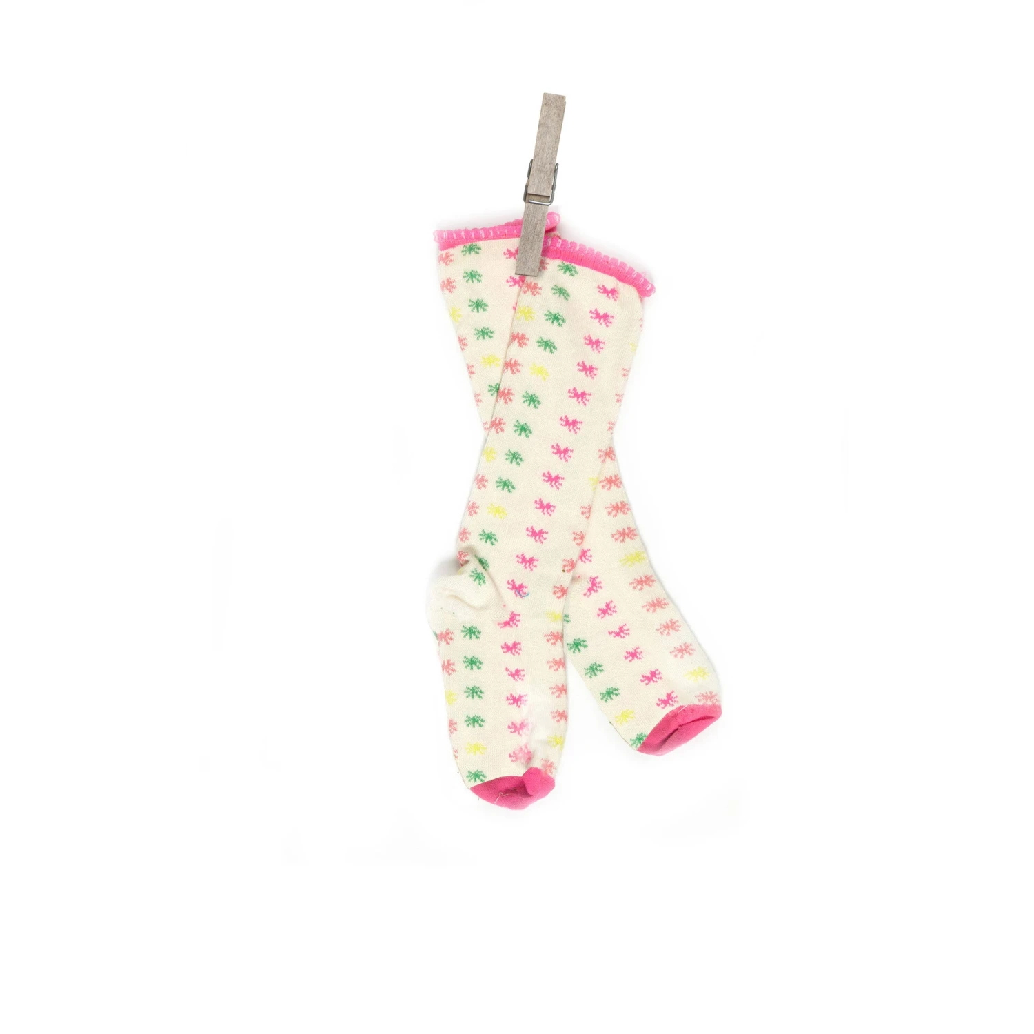 In our pink, coral, green and yellow star print – these socks look great with one of our Palava dresses.