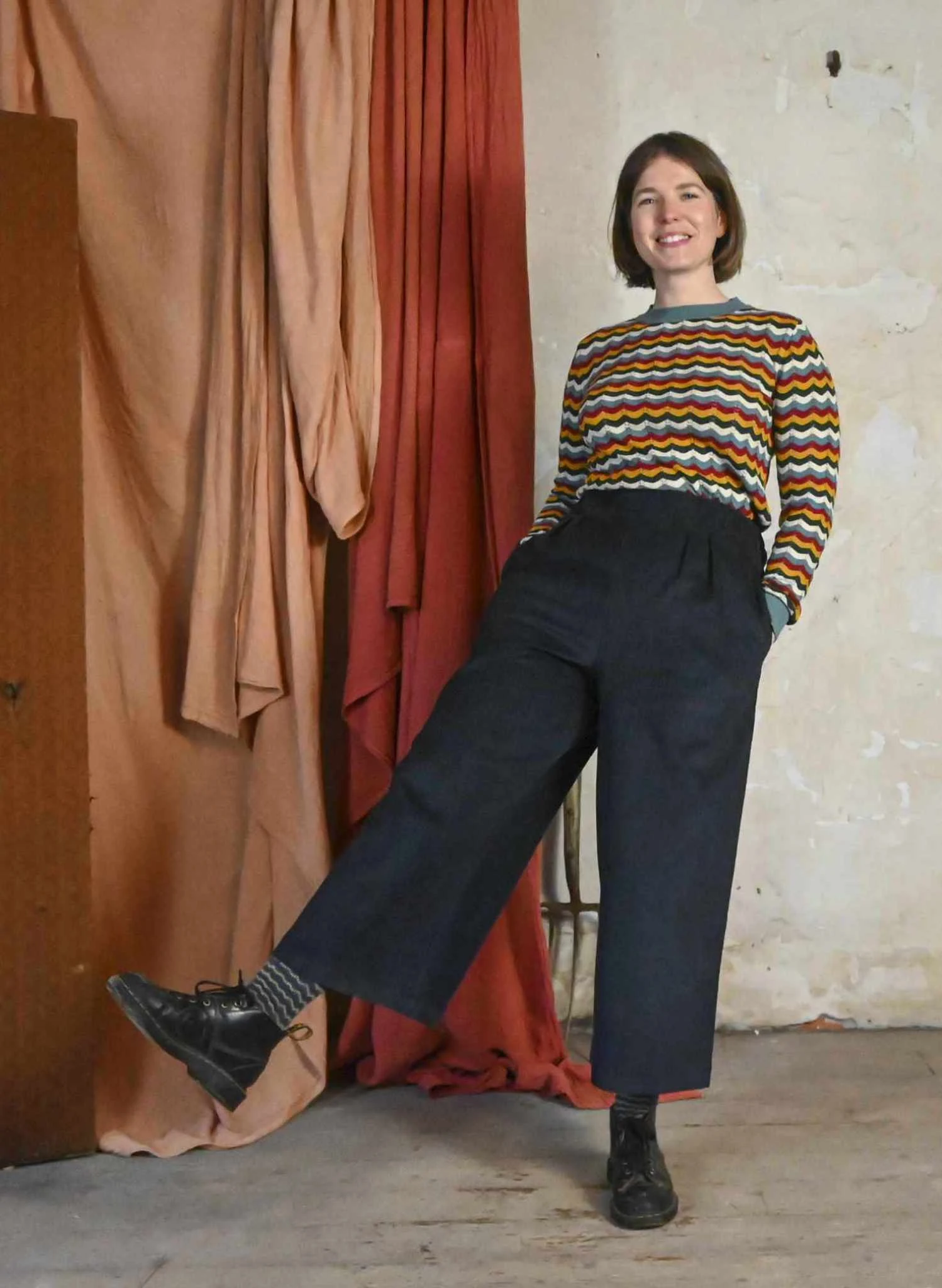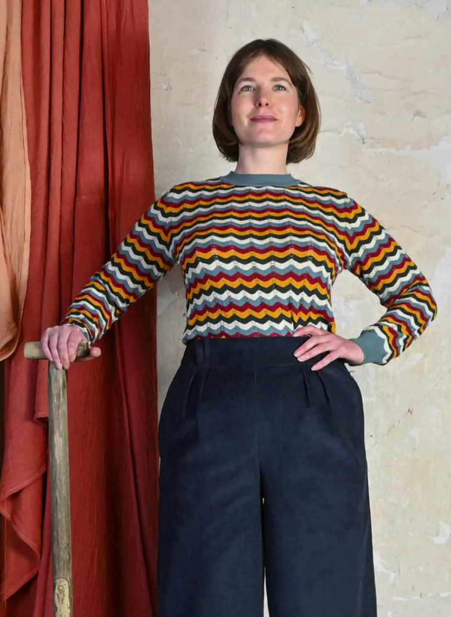 About the Style:Â Our Clara top is great for the turning of the seasons. With a lovely high neck, long sleeves and an interesting knitted pattern, she’s great to add a little colour to your outfit. She’s not to heavy either which makes her perfect for layering when the weather gets colder.