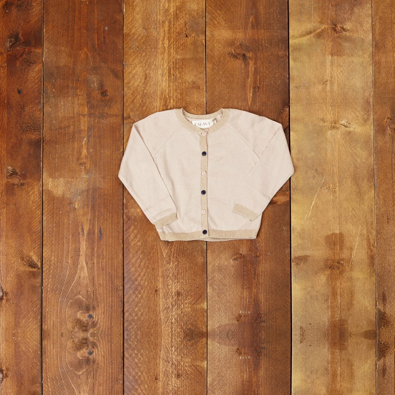 Our classic cardigan in pink – with full length sleeves, a fitted waist and sparkly trim. A lovely choice for a festive Palava outfit!