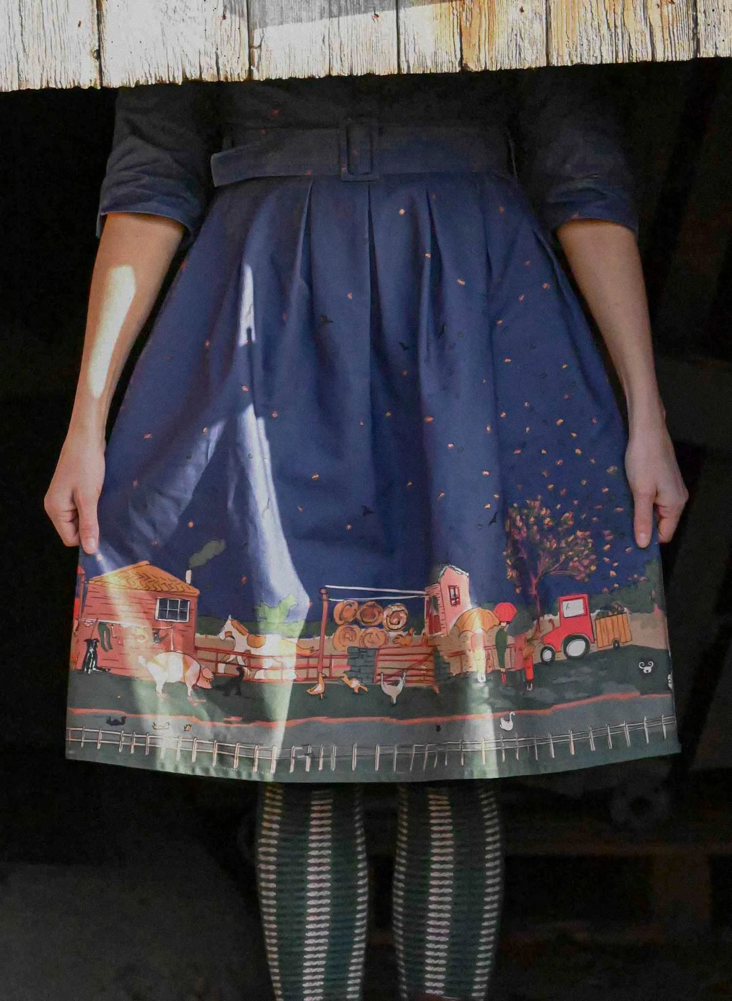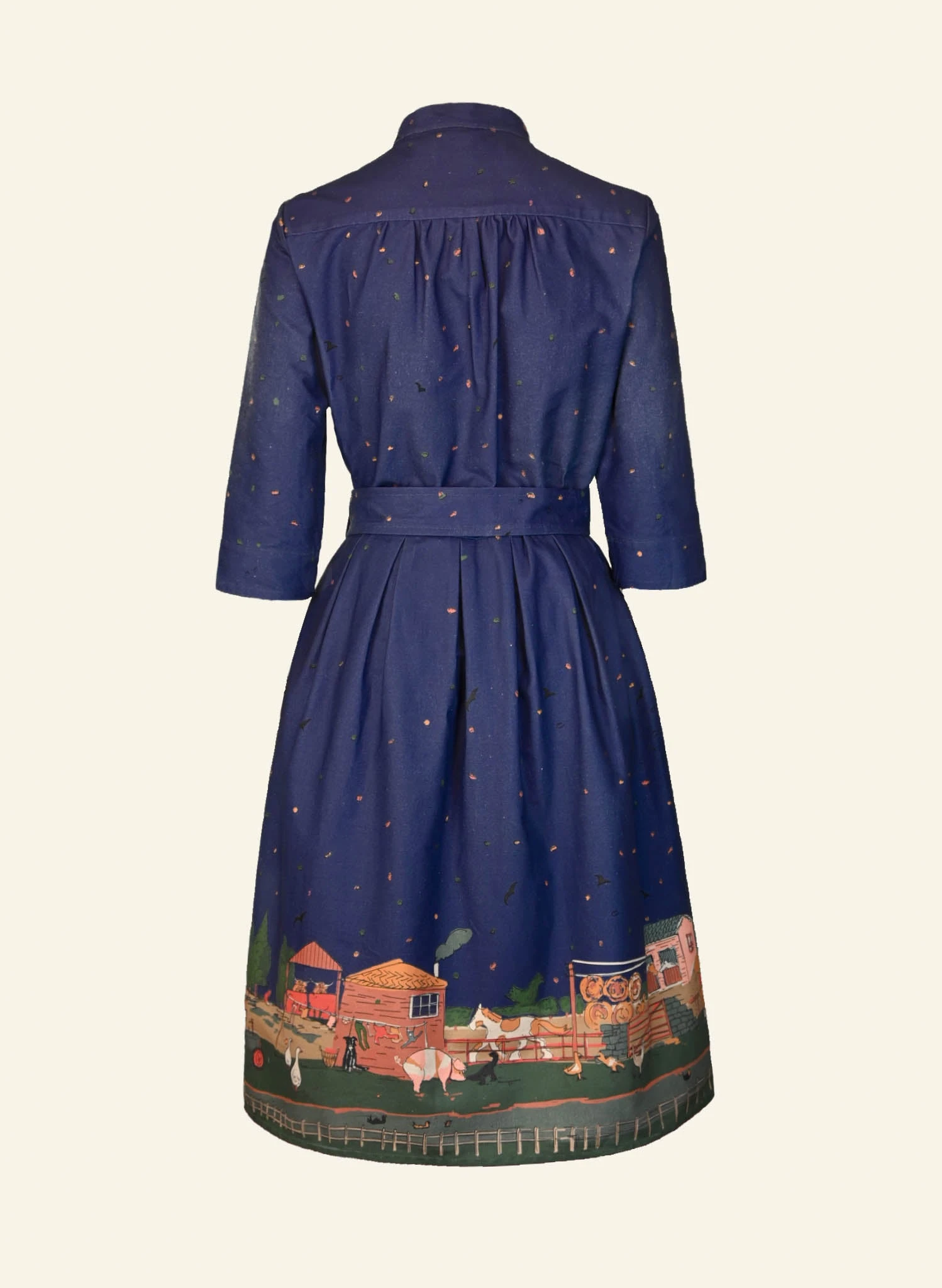 About the Print: Like all of the best Palava border prints, the more you look, the more you discover. Cows, chickens, dogs, horses, highland cows, sheep—you name it, this farm has it! A charming countryside scene brought to life in every detail.