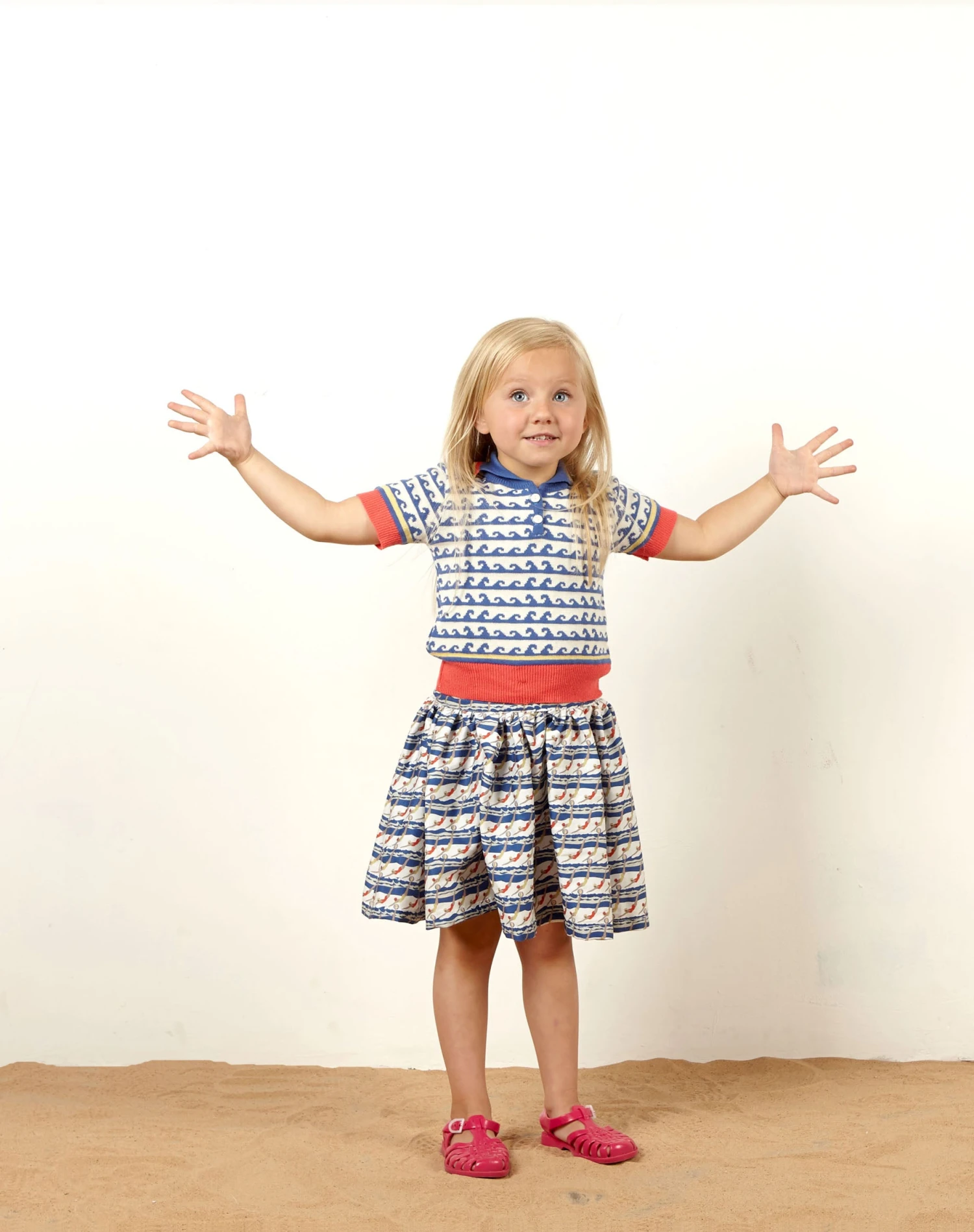 Featuring our bright Royal Blue Diver Rows print, the Jenny skirt is perfect for play days, parties or just everyday fun! A very comfortable skirt with a button-hole elasticated waist, which can be adjusted to fit your little one perfectly.Â