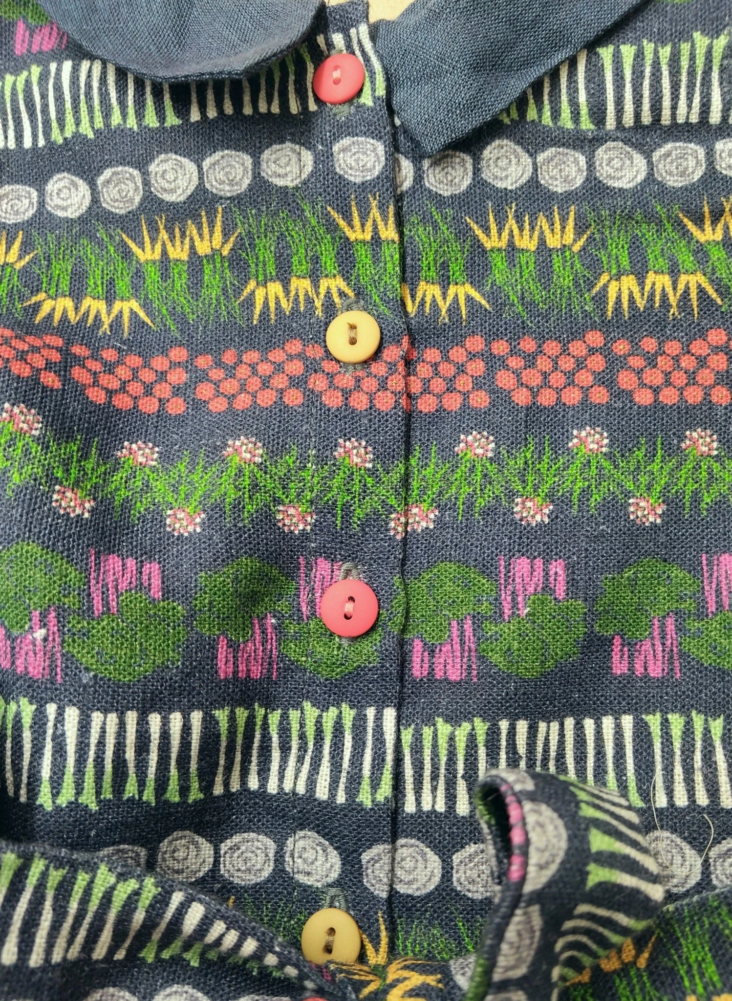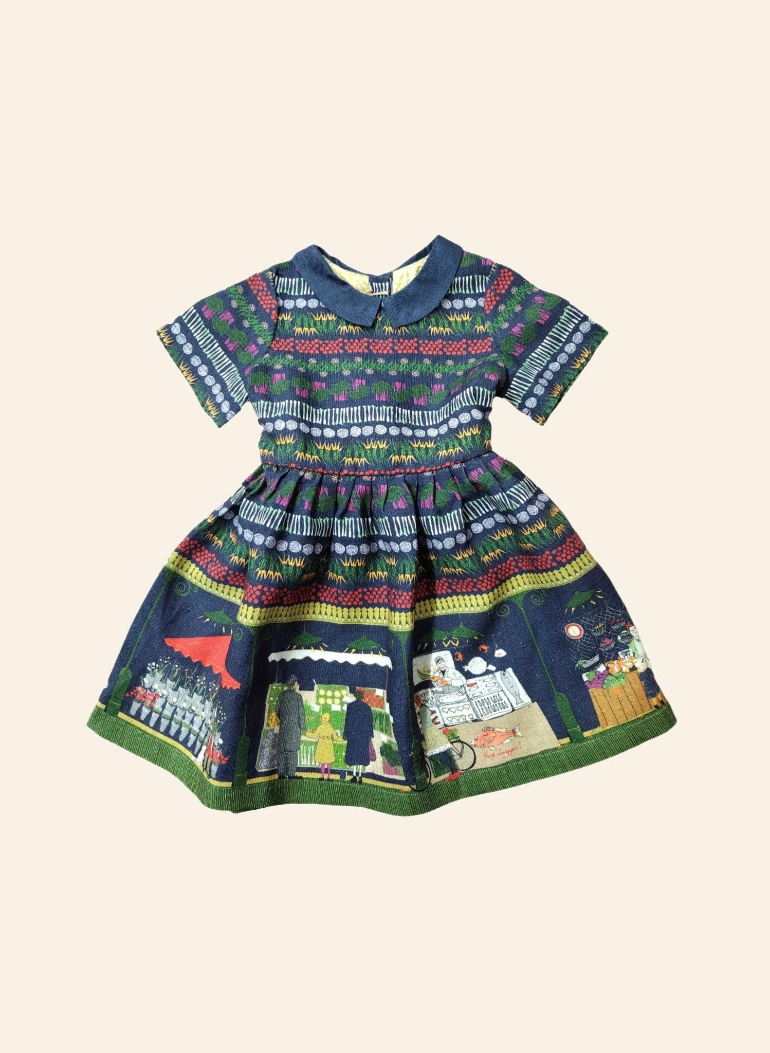 Our Farmer’s Market print is made from a beautiful winter weight linen, telling a delightful story of a visit to a bustling Sunday market.