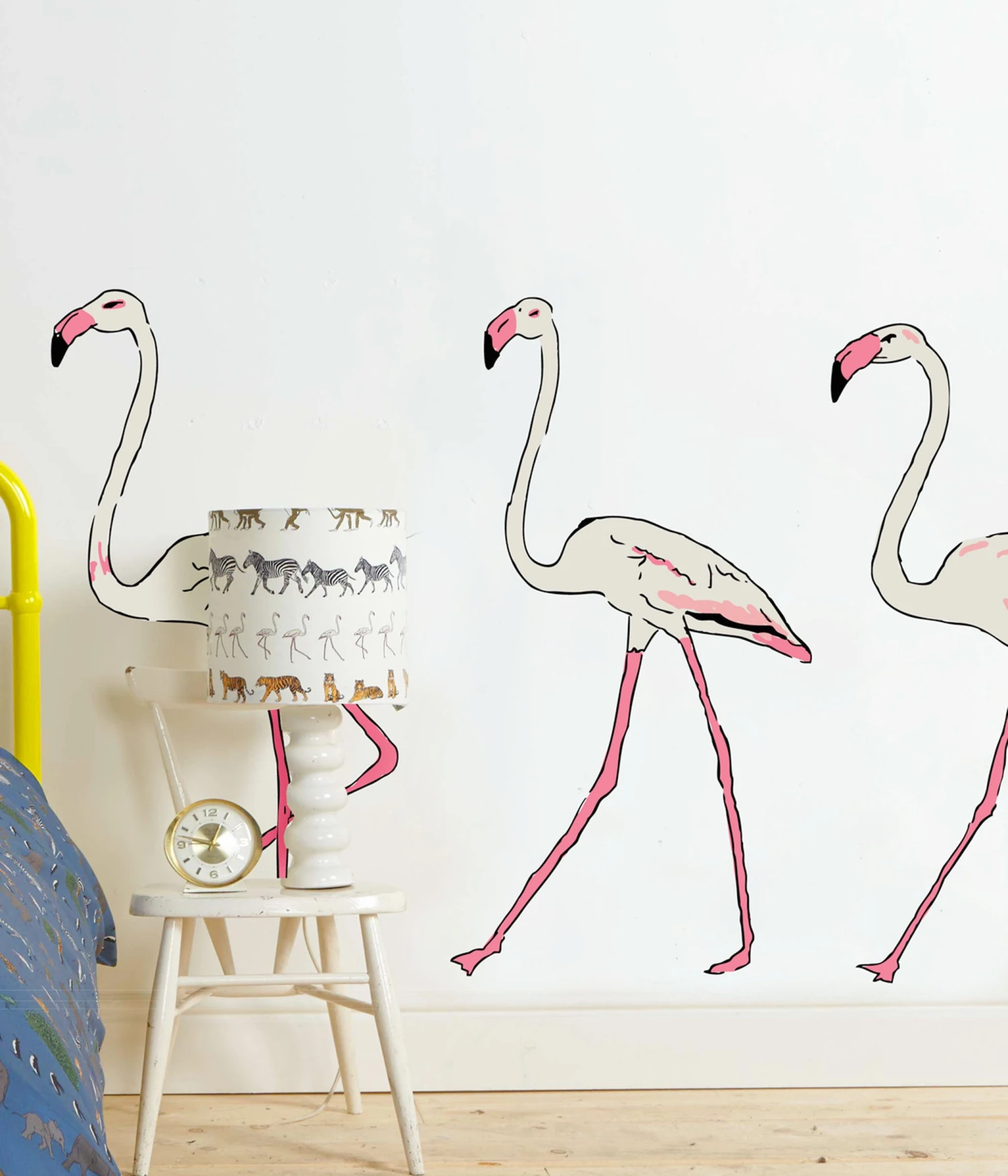 Add our flamingos to your wall alongside our new Walking Zoo wallpaper or our Walking Zoo bedding – for a really wild Palava look!