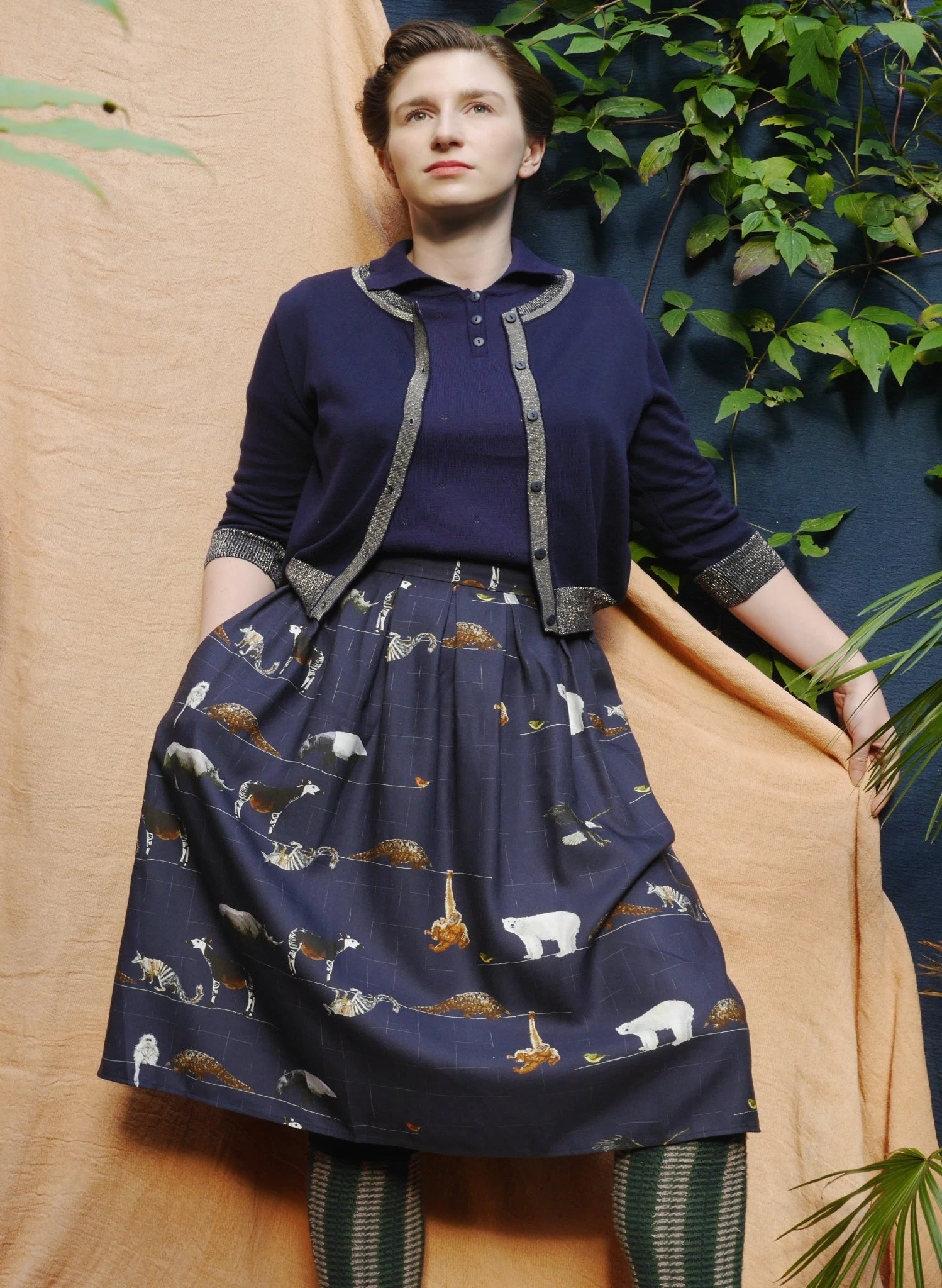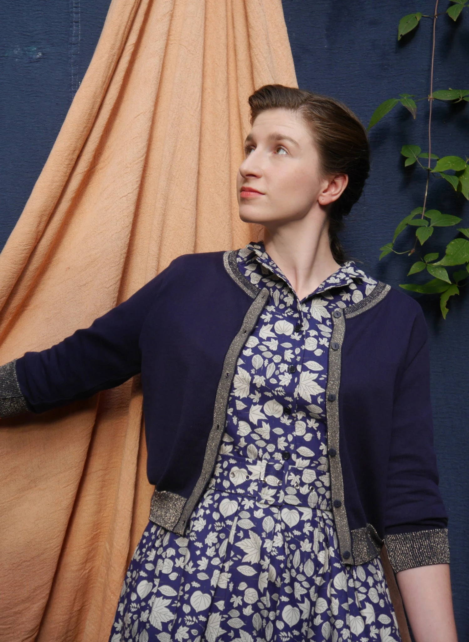 Our classic cardigan in navy – with three quarter length sleeves and fitted waist. Perfect for the festive season, special occasions or to add a touch of sparkle to every day.