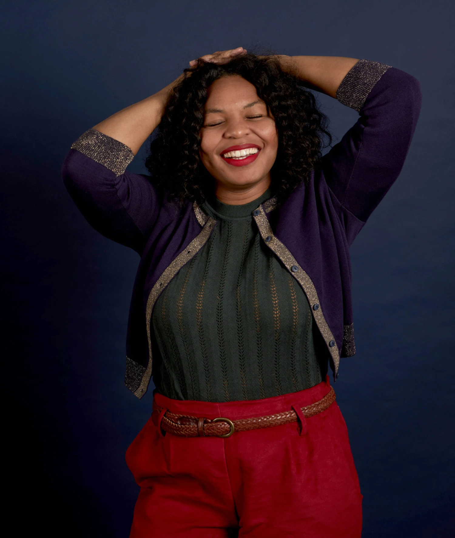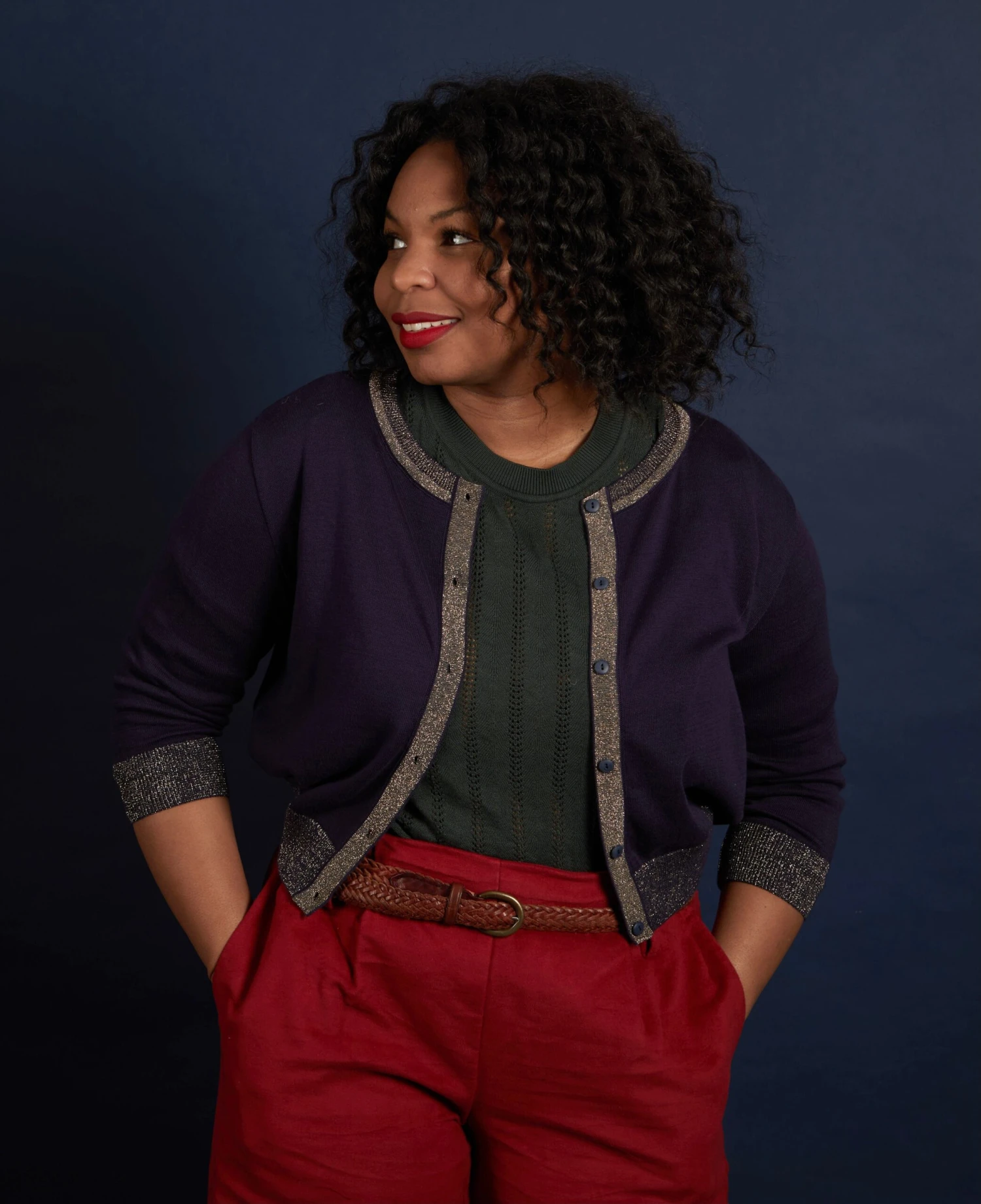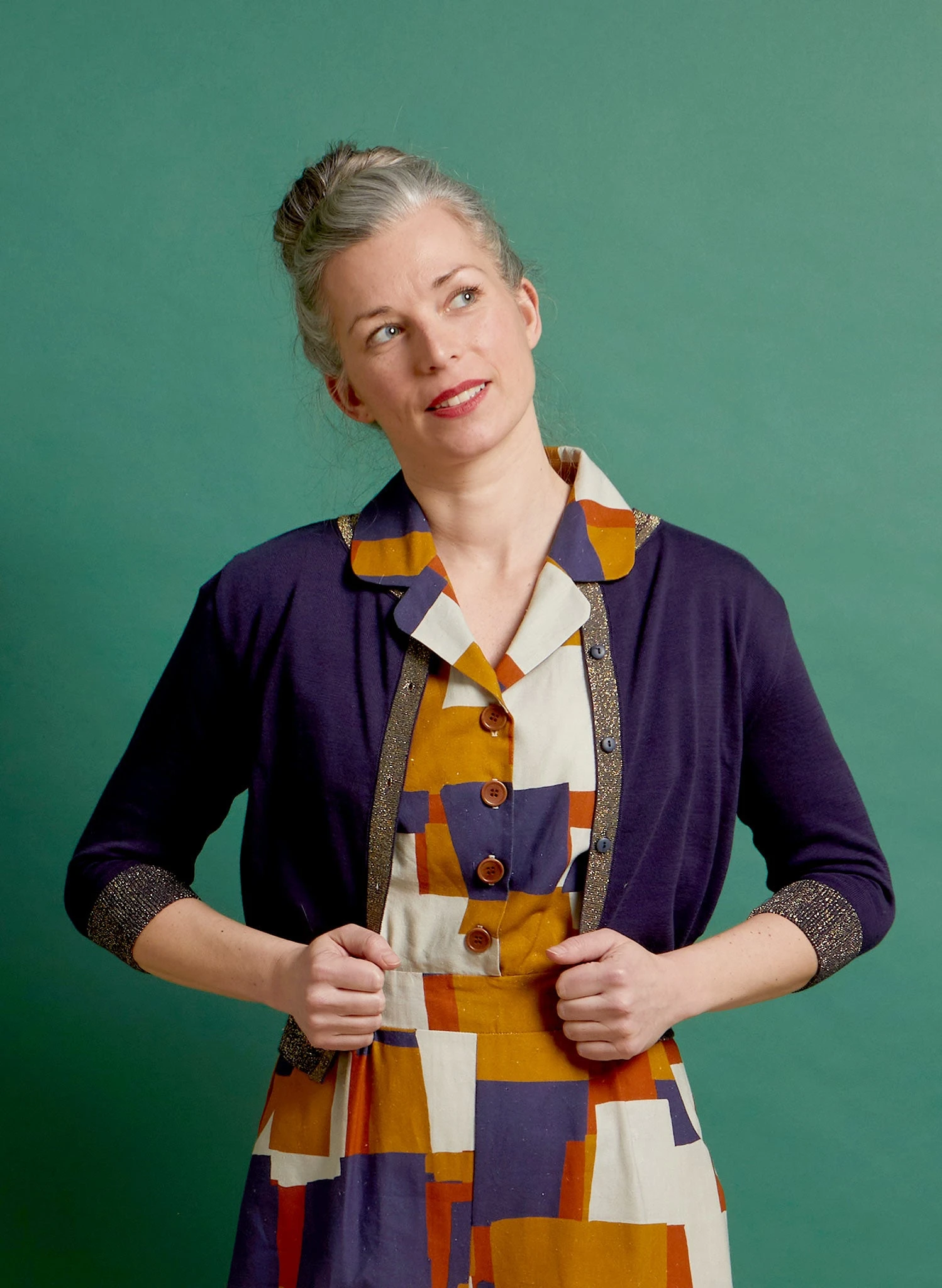 The Style: Classic Vera is knitted in soft organic cotton, has ¾ length sleeves and a standard length in the body. Features navy buttons and sparkly trim – it’s the little details that make our Palava knitwear special. This makes a wonderful addition to a Palava dress for a full festive outfit.